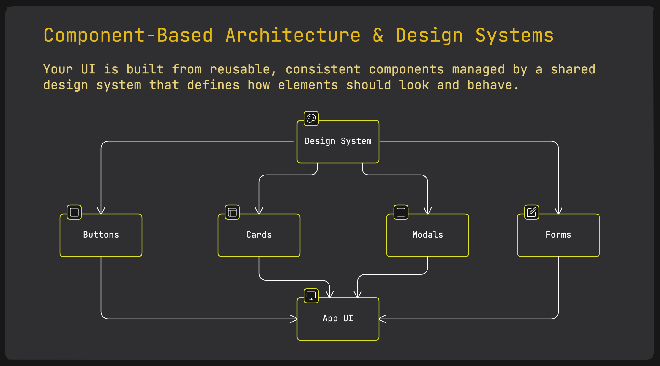 Components are the building blocks of your app. A design system ensures these components stay consistent and reusable across teams and projects.