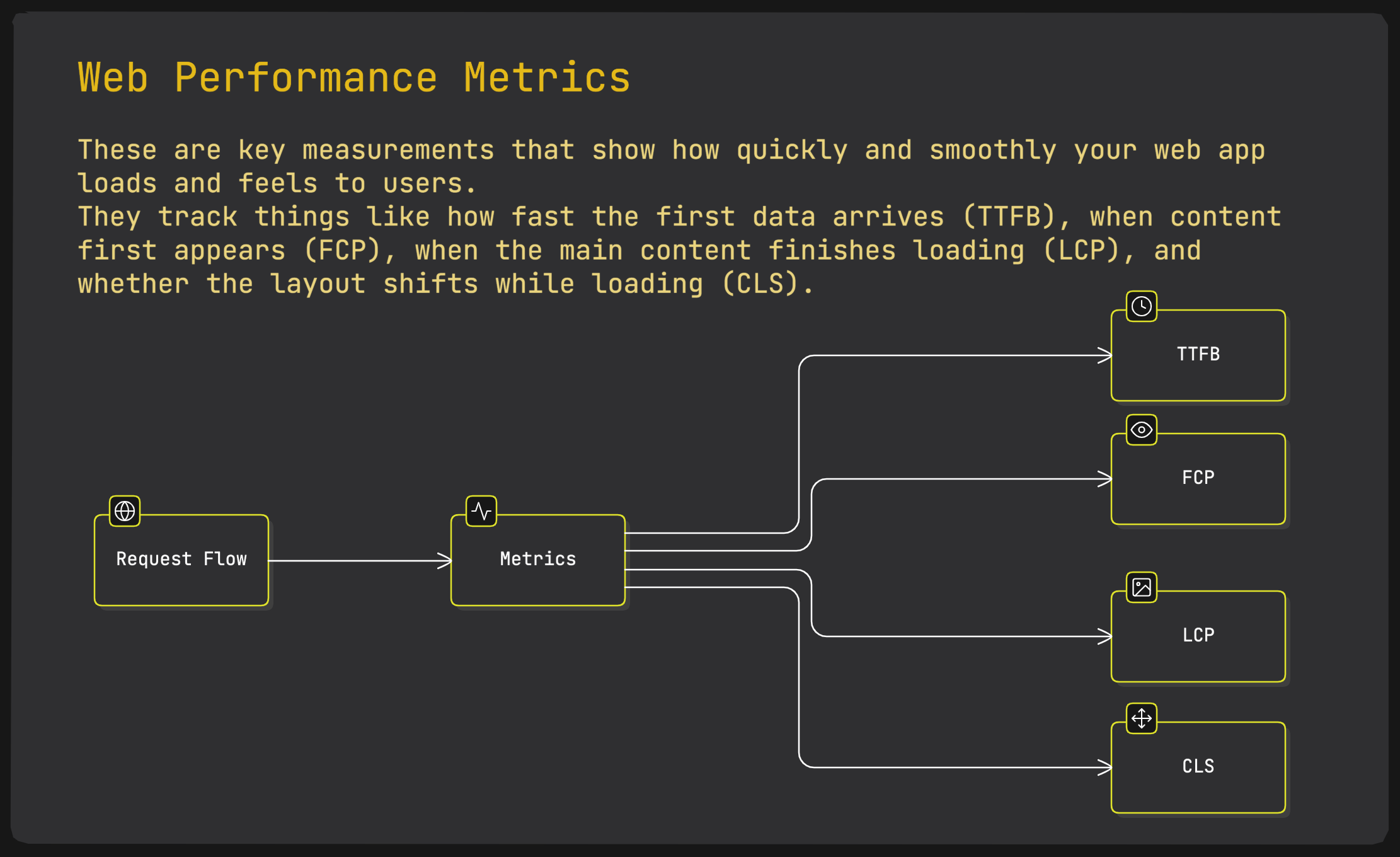 These are basically the frontend versions of response time, throughput, and latency in backend systems. It’s important to keep a close eye on them; users can notice even minor delays of a few hundred milliseconds.